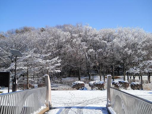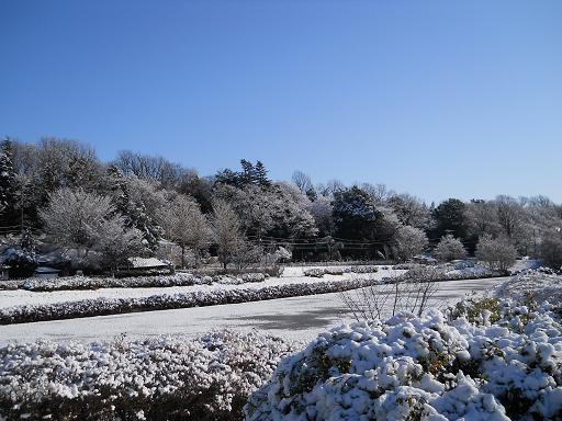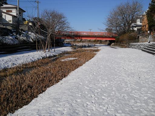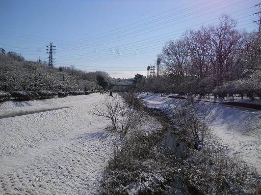 今朝はすっかり雪化粧で普段と違う表情の野川流域を歩いてみました。