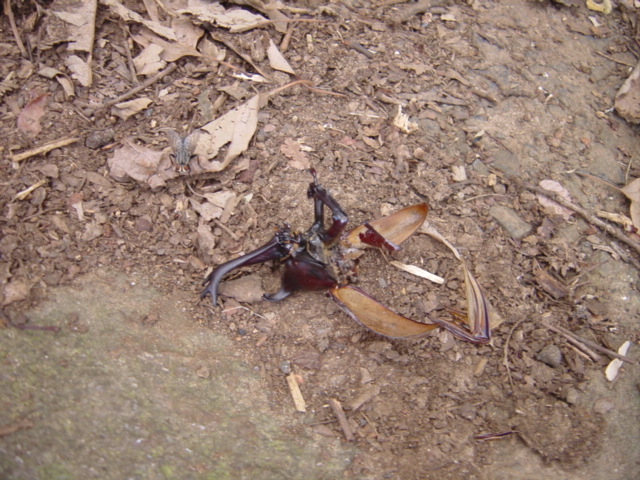 死んでいるとはいえ今年見つけた初カブトムシです。たしかにここはカブトムシ、クワガタがいそうな感じです。