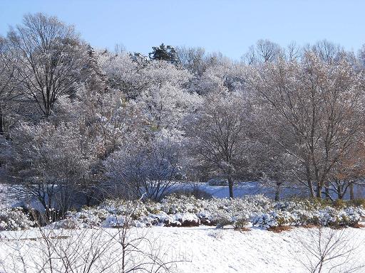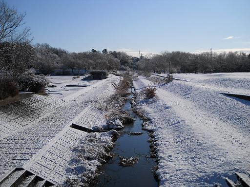今朝はすっかり雪化粧で普段と違う表情の野川流域を歩いてみました。